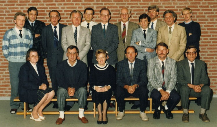 Foto schoolbestuur bij de heropening van de Patriciusschool Pey op 23 september 1988.